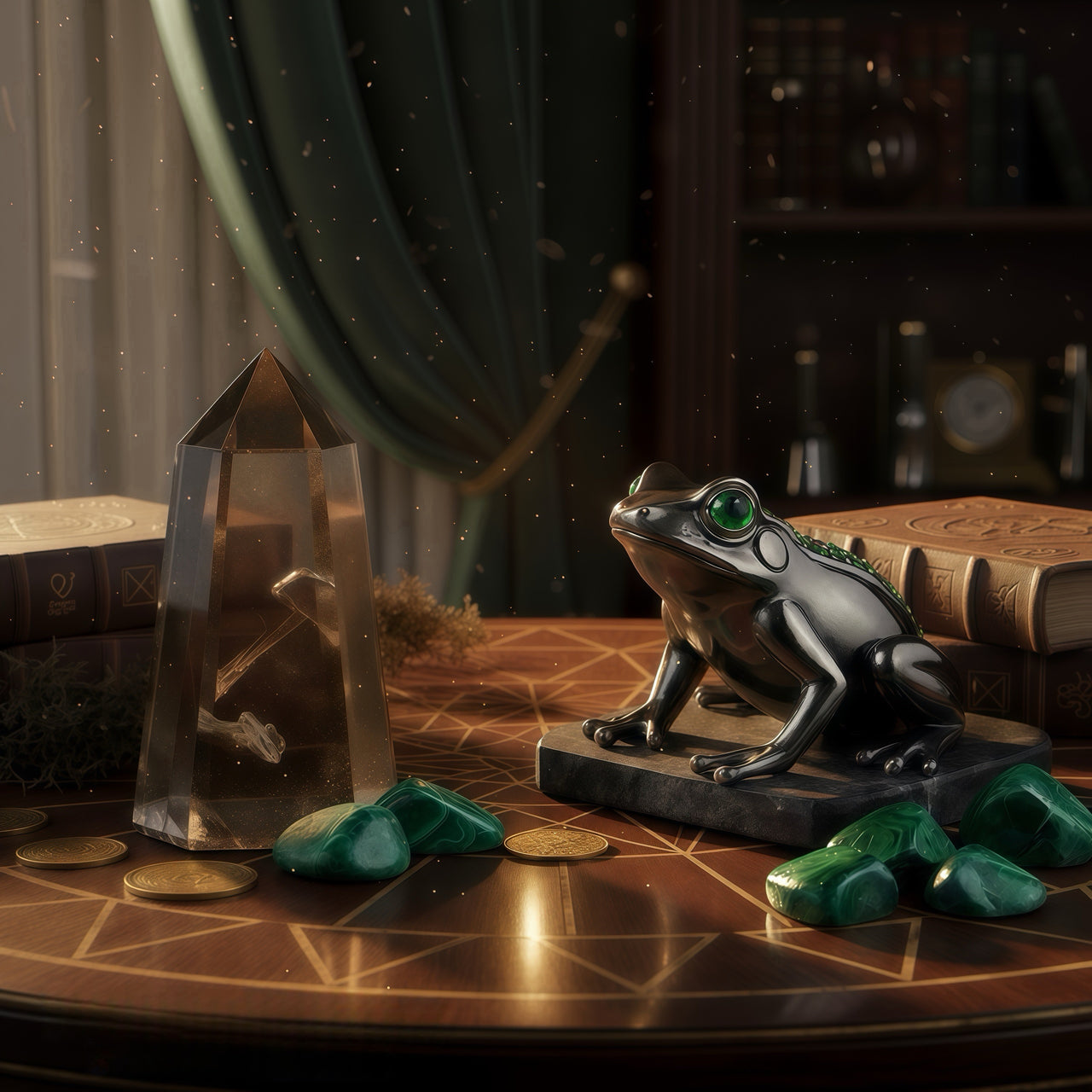 The frog — a messenger between water and land — symbolizes renewal and intuition.